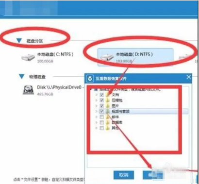 3. 軟件頁面將會顯示讀取到的電腦分區信息,找到受損分區勾選上,鼠標點擊文件設置按鈕來自定義掃描文件的格式,減少掃描時間等等。