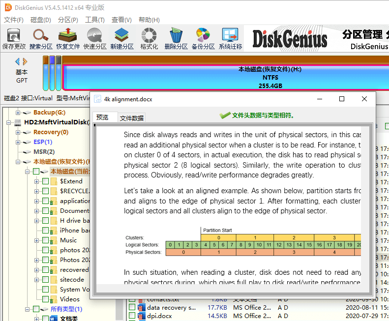 在軟件里雙擊某個文件即可打開下面的文件預覽窗口,這樣可以清楚地看到文件內容并判斷該文件是否正確。通過預覽文件,能夠對最終的恢復結果有大致的了解。