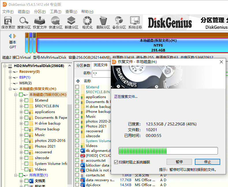 在搜索文件期間,軟件會實時更新掃描結果,將找到的文件不斷地顯示出來。如果想要恢復的文件都已經列出來了,可以提前結束掃描。