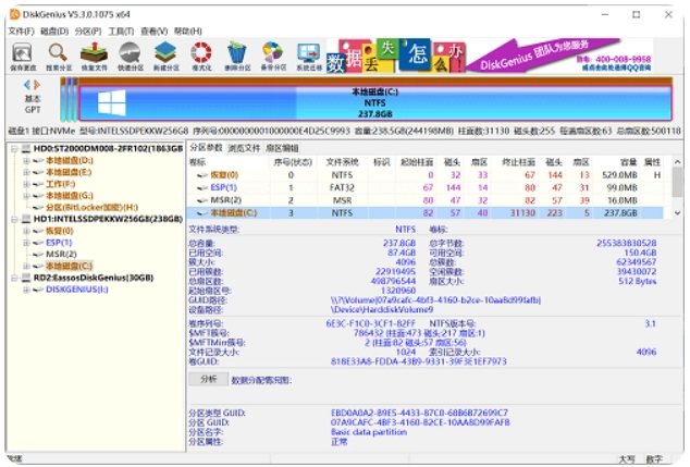 DiskGenius是一款硬盤分區及數據恢復軟件。Windows版本的DiskGenius軟件,除了繼承并增強了DOS版的大部分功能外(少部分沒有實現的功能將會陸續加入),還增加了許多新的功能。如已刪除文件恢復、分區復制、分區備份、硬盤復制等功能。另外還增加了對VMWare、Virtual PC、VirtualBox虛擬硬盤的支持。