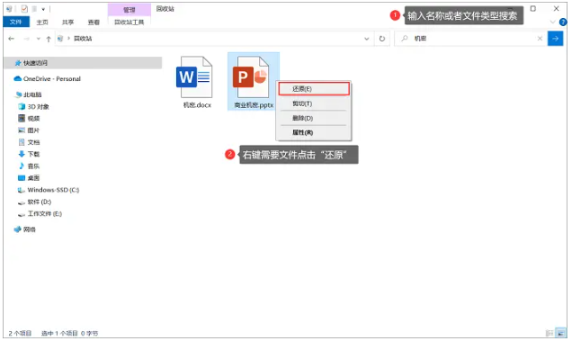 如果只是單純的被右鍵鼠標刪除的文件,電腦都會轉移到回收站里面去,這時只需打開電腦系統的回收找,找到需要的文件右鍵選擇還原,這樣就可以將誤刪除的文件恢復到原來的保存路徑,這種僅適用于右鍵刪除的文件,如果是永久刪除的就不行了。