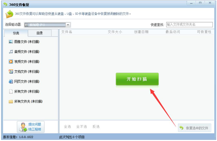 接著選擇需要恢復的驅動,選好點擊開始掃描。