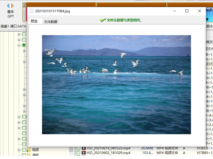 4、我們掃描進程列出文件后,可以進行文件預覽了。我們點擊軟件左側的文件列表,右側就會顯示相應的文件信息;在軟件右側界面點擊某個文件,軟件會彈出文件預覽窗口,并顯示文件內容。這種預覽方式可以幫助我們快速找到需要恢復的數據,并判斷該文件是否有損壞。