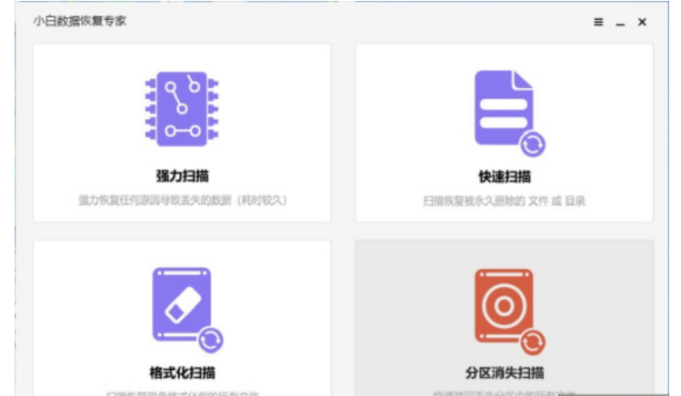 小白數據恢復專家官方版是一款專業高效的數據恢復工具。小白數據恢復專家最新版能夠幫助用戶處理誤刪除文件、誤格式化分區、誤分區、文件不能復制等問題,能夠對丟失的數據進行快速恢復。小白數據恢復專家支持邊掃描邊顯示,方便用戶隨時找到需要恢復的文件。