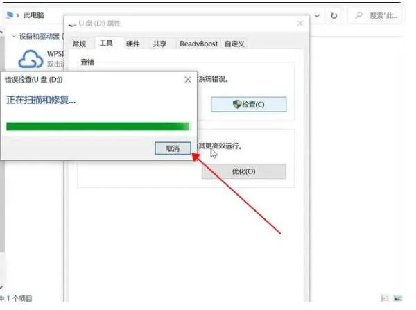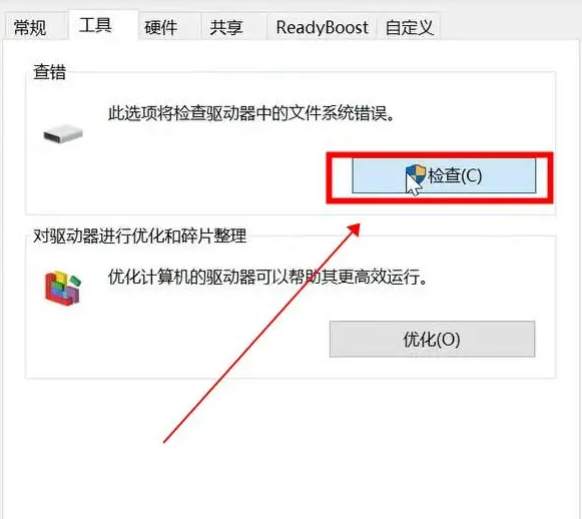 2、在屬性頁面中選擇“工具”,然后點擊頁面右側的“檢查”按鈕自動檢查修復;