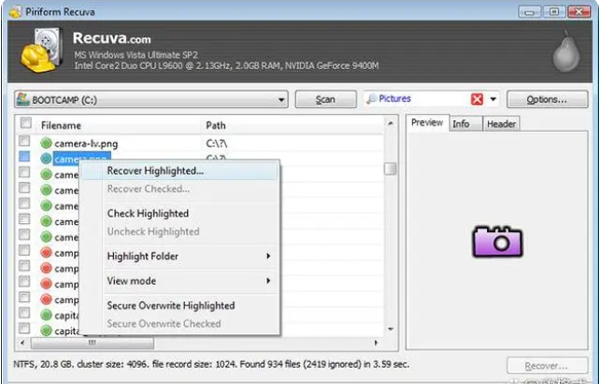 Recuva是一款Windows平臺下的文件恢復軟件,可以恢復誤刪的任意格式的文件,同時可以恢復硬盤、U盤、內存卡等等設備的文件,只要沒有重復寫入數據,無論如何格式化都可以進行恢復,支持FAT12、FAT16、FAT32、NTFS 文件系統。