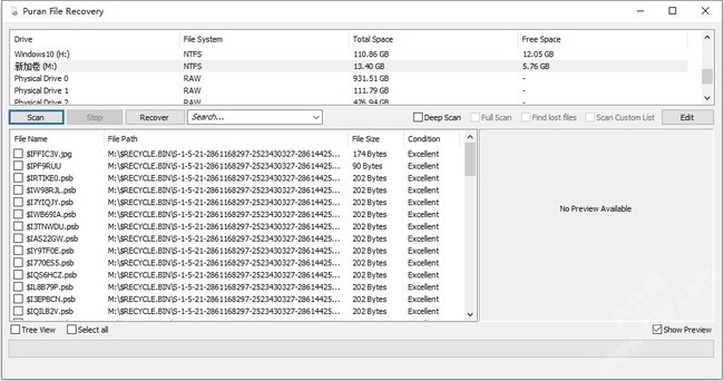 《Puran File Recovery》是一款免費的數據恢復軟件,可以幫助您從損壞的設備(如劃痕的CD/DVD、U盤、硬盤、存儲卡等)中恢復大量數據。如果您能夠看到任何媒體中的文件列表,數據恢復可以恢復那些文件。