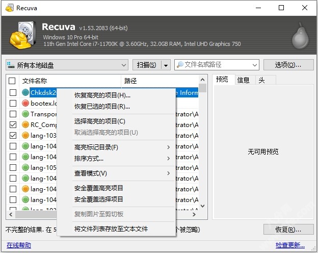 《Recuva》是由CCleaner公司開發的免費的數據恢復軟件??梢曰謴湍鷣G失的圖片、音樂、文檔、視頻、電子郵件或任何其他文件類型。能夠直接恢復硬盤、閃盤、存儲卡(如 SD 卡,MMC 卡等等)中的文件,只要沒有被重復寫入數據,無論格式化還是刪除均可直接恢復,支持 FAT12,FAT16,FAT32,NTFS,exFat 文件系統。