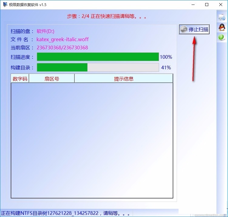4、掃描過程中,可隨時點擊停止掃描,自由進行選擇