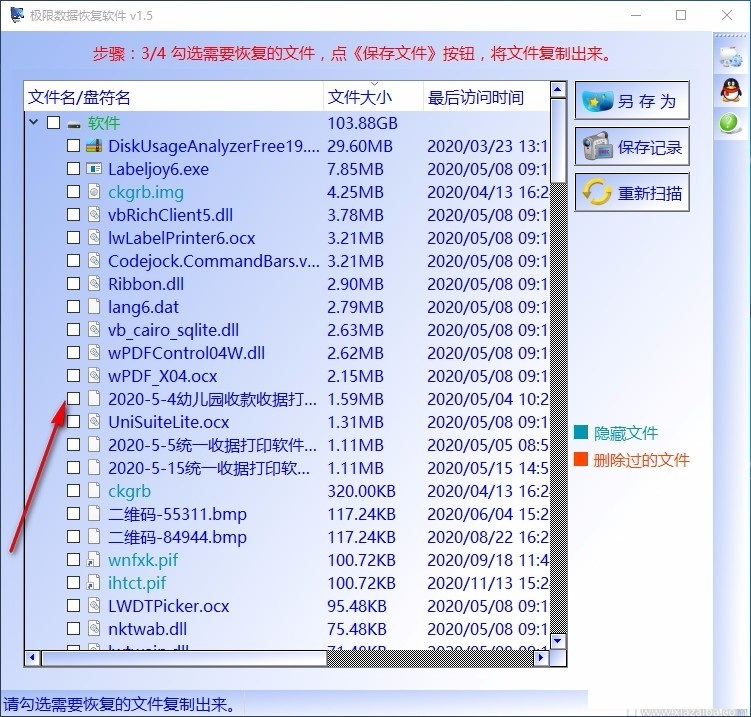 5、選擇需要恢復的文件,勾選即可進行選擇,使用方便