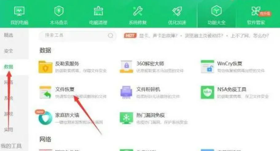 360文件恢復電腦免費版這也是在360安全衛士里的一個組件,能夠幫助快速從硬盤、U盤、SD卡等磁盤設備中恢復被誤刪除的文件,如果有些文件刪除的比較早了,又或者是剛從回收站刪除沒有多久的,那么大家其實可以嘗試使用文件恢復來恢復需要找回的文件。