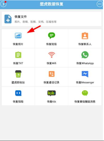 1、壁虎數據恢復安卓怎么使用呢?如果要在壁虎數據恢復中恢復自己誤刪的照片,就需要先選擇其中的“恢復照片”功能。