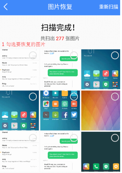 5、掃描結束后,在界面中將會顯示掃描出來的數據,請勾選要恢復的手機照片文件,等待數據恢復完成即可。