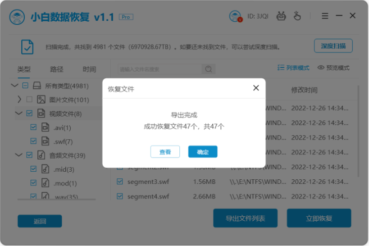 1)使用小白數據恢復軟件