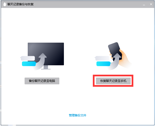 2、在彈出來的新對話框內有兩種模式,我們點擊【恢復聊天記錄至手機】即可。