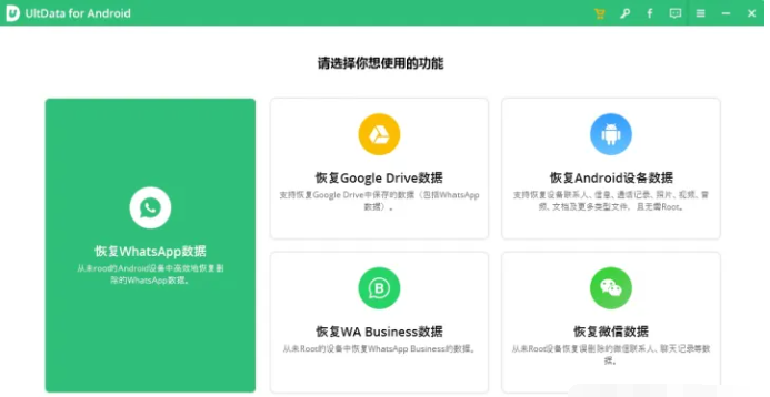 U1tData數據恢復軟件是目前比較好用的手機數據恢復工具,可以幫助大家恢復安卓設備上已刪除和丟失的數據,包括華為手機、小米手機、OPPO手機、Vivo手機等。可以輕松恢復多達30種類型的數據。憑借高恢復速度,讓用戶在開始之前預覽和選擇要恢復的數據。