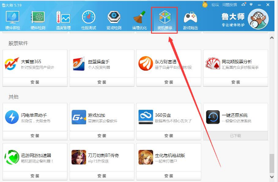 方法一:下載“魯大師”進入在“裝機必備”找到“一鍵還原系統”。