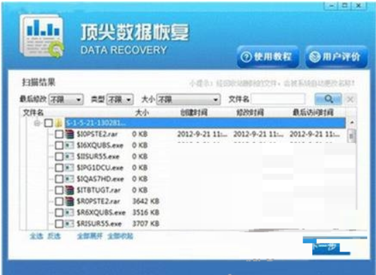 4、掃描完成后即可看到可以恢復的文件列表了,選擇需恢復的文件,恢復即可。