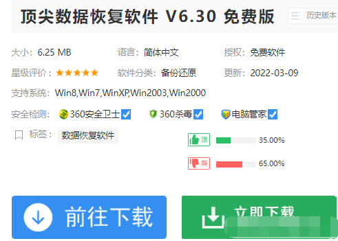 1、自行在網上查找“頂尖數據恢復軟件”,即可找到官方的地址進入下載。
