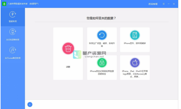 1、八度數據恢復免費下載后怎么使用呢?我們打開軟件使用界面,然后選擇相應的功能進行使用。