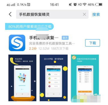 1、手機數據恢復精靈怎么用呢?我們下載數據恢復精靈后怎么使用呢?首先是將手機數據恢復精靈這個應用裝到手機里,可通過手機瀏覽器或者手機應用進行搜索下載。