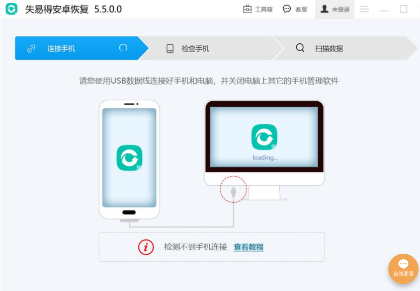 注意,如果大家手機無法正常連接上電腦,可以請參照彈出窗口上的提示進行處理,然后點擊“查看教程”。