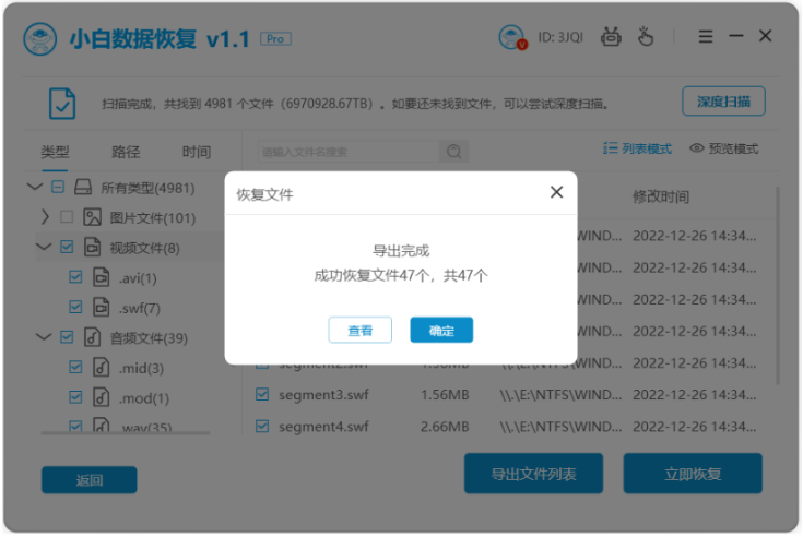 以上便是電腦數據庫刪除數據恢復的方法步驟,這里給大家介紹了兩種好用的工具,分別是小白數據恢復軟件以及diskgenius軟件的使用步驟,大家根據自己的實際情況選擇合適的工具操作即可。