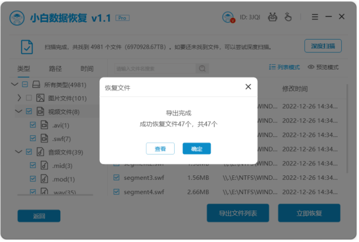 3、等待數據掃描完成后,選擇需要恢復的文件類型,點擊立即恢復。