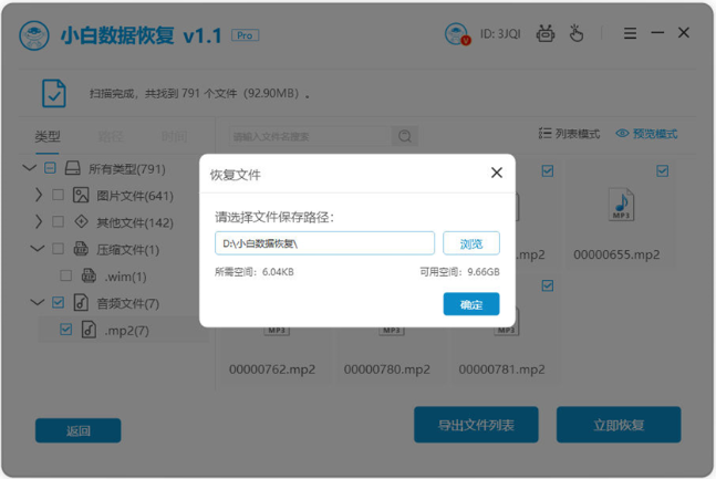 5、期間確認好要恢復的文件保存路徑,點擊確定。
