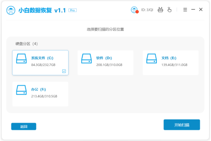 軟件版本:小白數據恢復軟件1.1