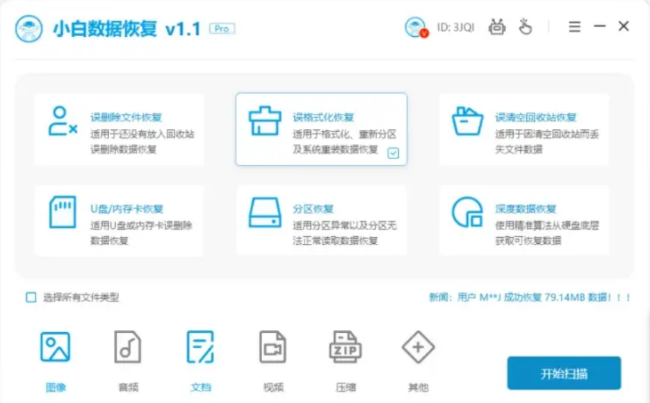小白數據恢復軟件是一款專業的硬盤數據恢復軟件,可以幫助我們快速掃描硬盤數據進行直接恢復,操作簡單,恢復成功率高,即使數據恢復小白也可以輕松上手。除了電腦硬盤數據恢復,軟件還可以恢復U盤、移動硬盤、SD卡等各類存儲設備誤刪除數據恢復,包含回收站誤刪除、誤格式化、誤清空等情景下文件、照片、視頻丟失恢復,非常值得大家使用。