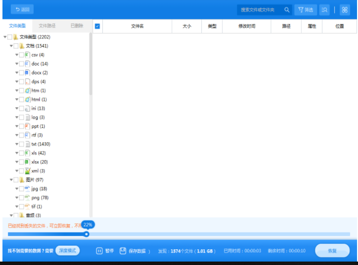 轉轉大師數據恢復軟件在掃描硬盤文件時也支持邊掃描邊找回的哦,如果你在掃描的途中找到了要恢復的文件,那么不用等結束也能夠恢復出來,大大的節省時間。