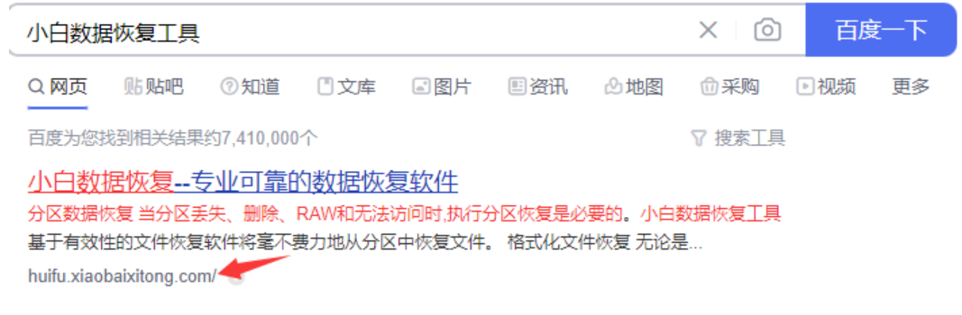 1、直接在網上輸入“小白數據恢復工具”,即可找到官方的地址進入。
