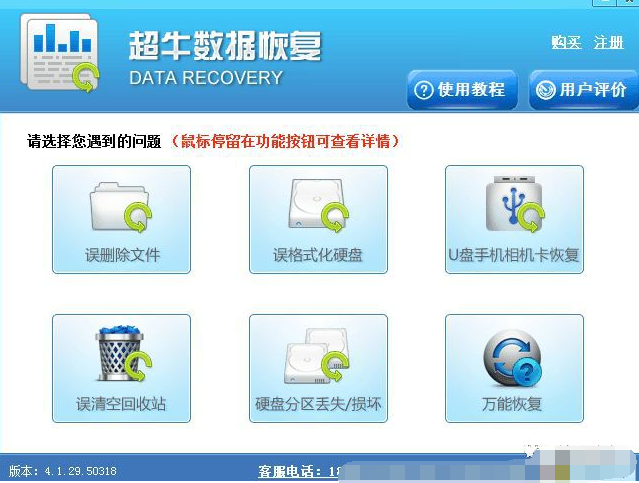 超牛數據恢復是一款實用的電腦數據恢復軟件。軟件功能強大,共有誤刪除文件,誤格式化硬盤,U盤手機相機卡恢復,誤清空回收站,硬盤分區丟失/損壞,萬能恢復六大功能選項,您可以自由選擇需要恢復的數據類型。超牛數據恢復軟件還具有以下特點: