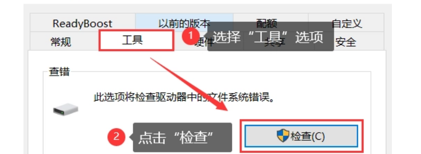 很多人可能都不知道Win系統其實也有自帶數據恢復工具,打開電腦桌面上的【此電腦】,選中損壞的磁盤。然后鼠標右鍵單擊,選擇【屬性】,切換到【工具】窗口,點擊【檢查】;接著選擇嘗試恢復恢復壞扇區即可嘗試恢復硬盤丟失的數據。