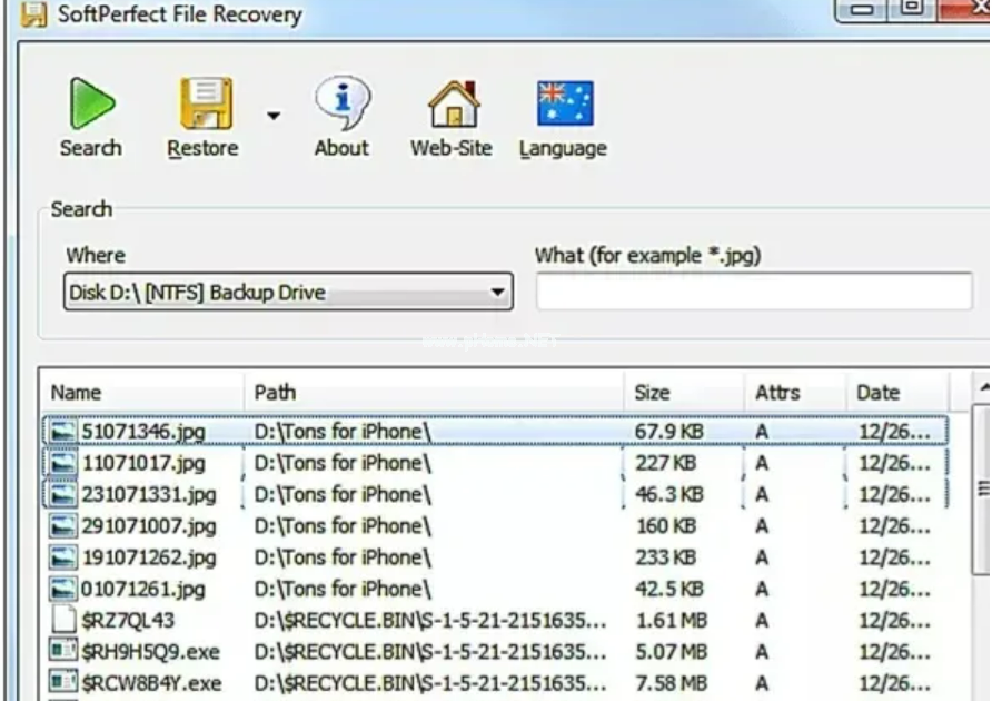完美文件恢復是另一個極好的文件取消刪除程序。搜索可恢復文件非常容易。任何人都應該能夠毫不費力地使用此程序。它將從硬盤驅動器,存儲卡等中取消刪除文件。應支持電腦上存儲數據的任何設備(CD/DVD 驅動器除外)。SoftPerfect 文件恢復是一個小的,500 KB的獨立文件,使程序非常便攜。隨意運行文件恢復從USB驅動器或軟盤。在下載頁面上向下滾動一下以找到它。