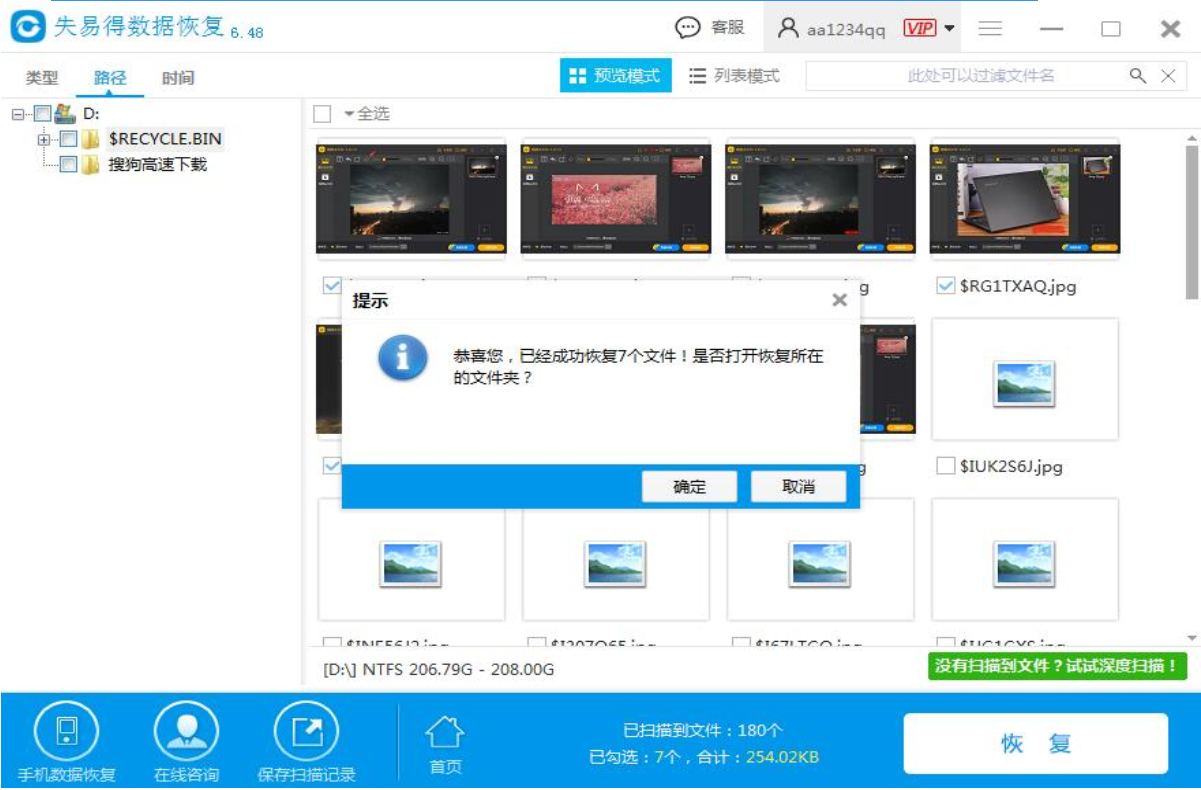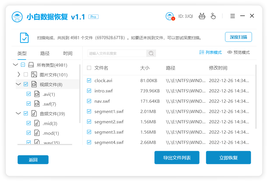 5、勾選這些需要恢復并且預覽正常的文件,點擊【恢復】按鈕,選擇好恢復路徑,就可以把文件恢復出來了。