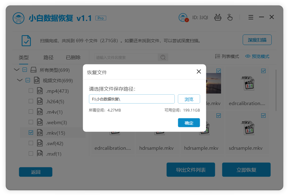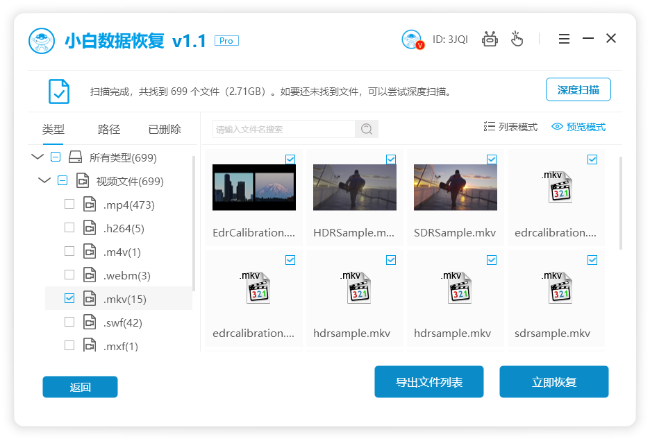 以上就是小編分享的找回誤刪除的文件視頻的方法,使用第三方數據恢復工具成功率高,特別是小白數據恢復專家軟件是完全免費提供使用的,有需要的朋友可以下載安裝按照以上步驟操作即可。