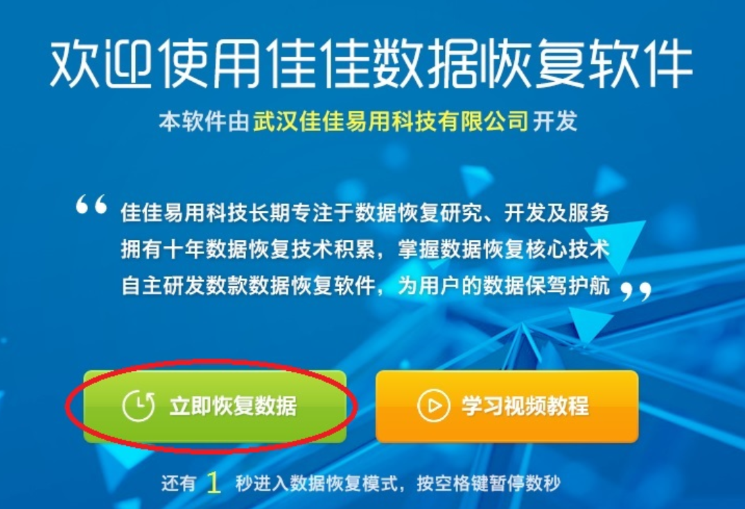 1、下載、安裝、運行佳佳恢復軟件,點擊“立即恢復數據”按鈕。