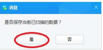 5、掃完完成后,彈出提示“是否保存當前已掃描的數據”,點“是”,等待保存結束。