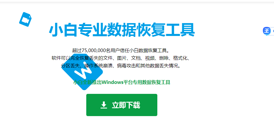 小白專業數據恢復工具超過75,000,000名用戶信任小白數據恢復工具。 軟件可以完全恢復丟失的文件、圖片、文檔、視頻、刪除、格式化、 分區丟失、操作系統崩潰、病毒攻擊和其他數據丟失情況。 小白全新推出Windows平臺專用數據恢復工具多合一專業數據恢復軟件,適用于不同的數據丟失情況 為丟失寶貴的數據而煩惱,您將如何挽救這些文件?毫無疑問,使用小白數據恢復軟件是最明智的選擇。