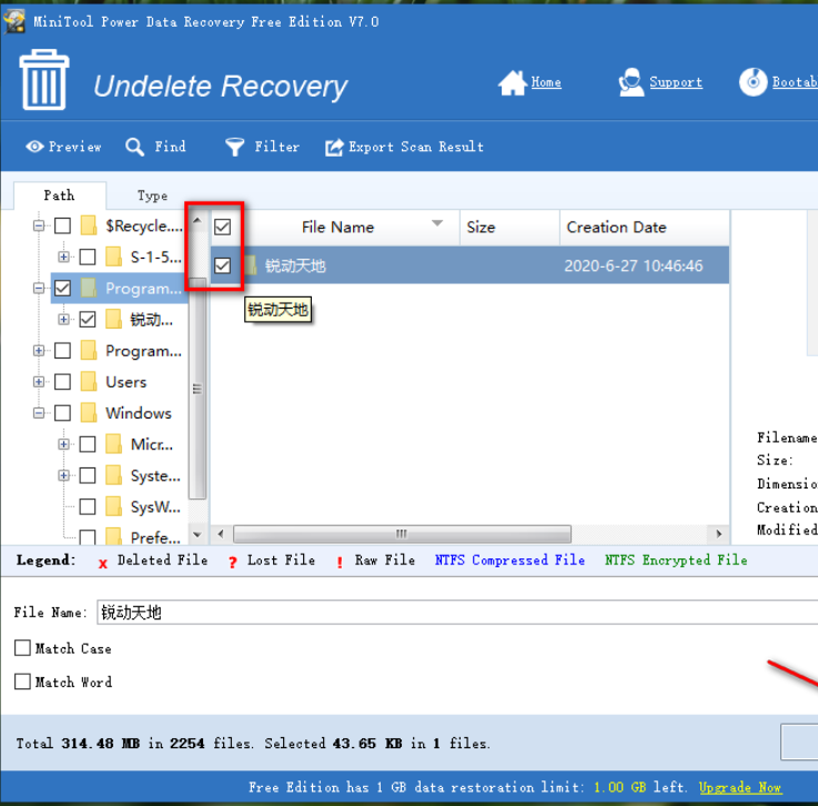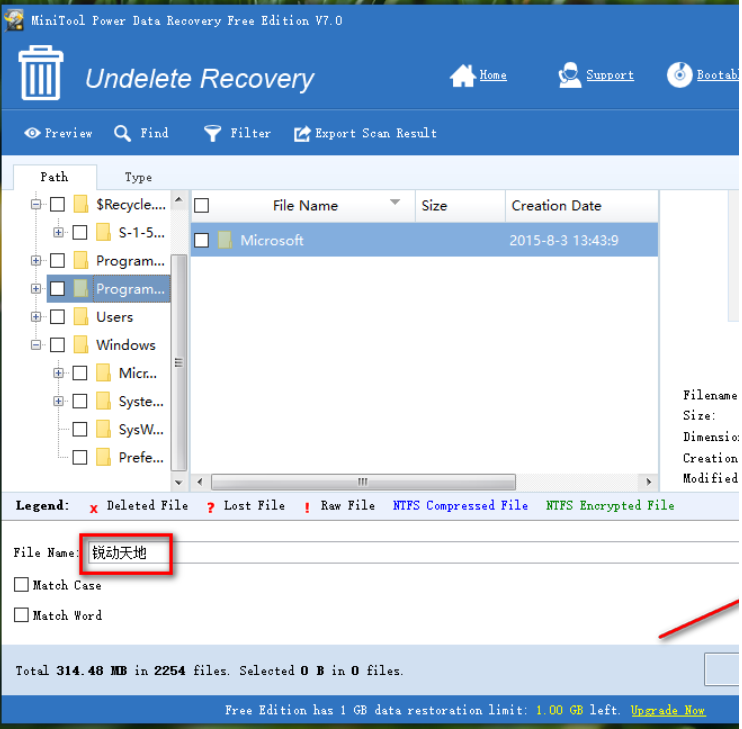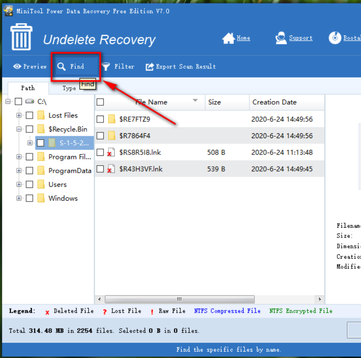 4、還可以通過軟件中的搜索查找方式來找到想要恢復的文件,點擊上方的Find按鈕,點擊之后進入到查找文件模塊。