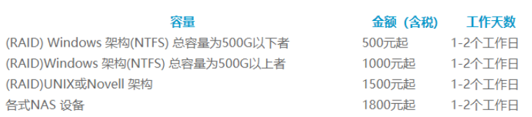 一、數據恢復服務收費表(實際以檢測公司判定為準)!