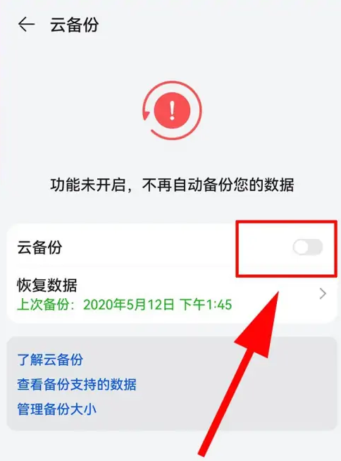 1、打開手機的云備份功能,將需要備份的數據上傳到云端。