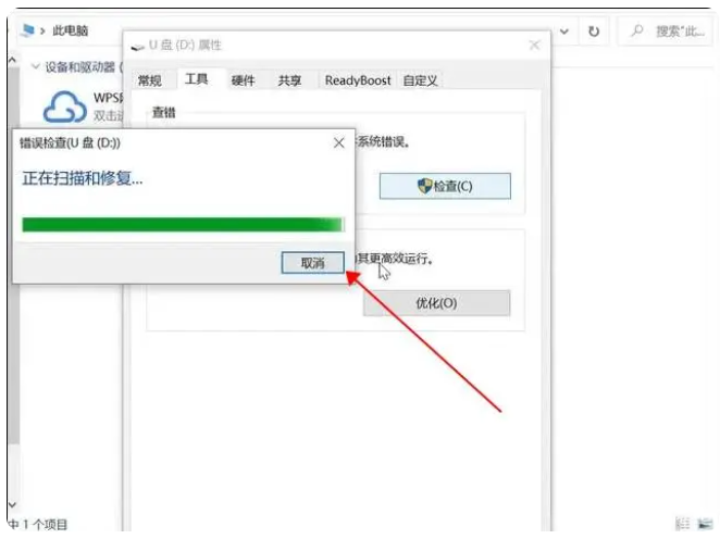 第二步:然后在屬性頁面中選擇“工具”,點擊頁面右側的“檢查”按鈕自動檢查修復;