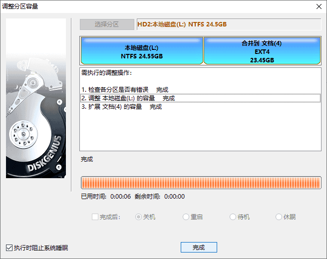 4. 在調整分區過程中請確保電源供電正常、不要強行關機。