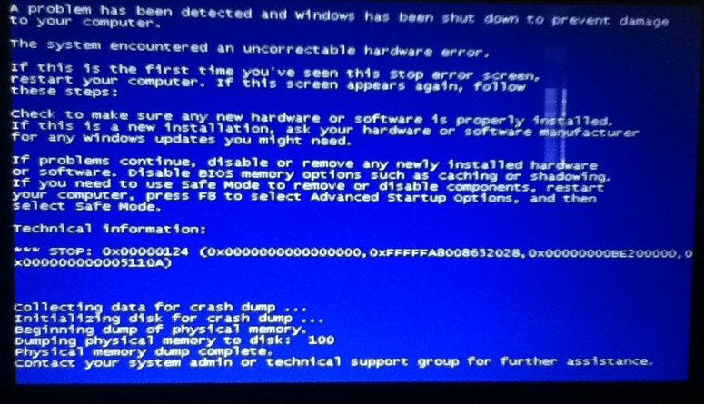 A2:藍屏代碼:0x00000124