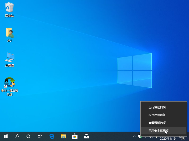 2、大家請根據以下步驟關閉 Windows Defender 安全中心,一般關閉后建議大家重啟電腦后再嘗試打開小白裝機軟件使用。在系統右下角找到 Windows Defender 圖標,右鍵,打開查看安全儀表盤。