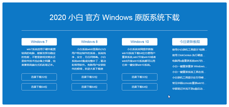 3、如果在小白 PE 系統中仍然無法連接網絡,那么您可以在其它電腦中下載您想安裝的 Windows 系統鏡像或者在小白官網首頁向下拉找到微軟官方原版鏡像,使用迅雷復制下載鏈接,然后拷貝到 U 盤里,再次進入到 PE 系統中搜索鏡像即可安裝。