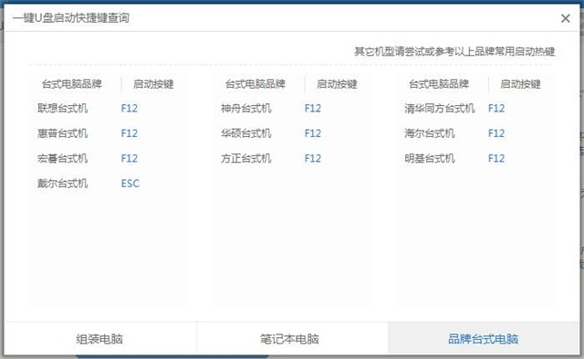9、我們重啟電腦,進入BIOS設置U盤啟動,各種品牌電腦進入BIOS設置的方法如下圖